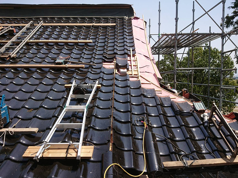葺き替えのメリットは、瓦の下の防水シートや桟木、下地材まですべて一新できるので建物自体の耐久性が向上するところにあります。