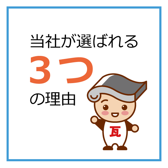 現場の状況(ダンプが入れるかなどの作業のしやすさ)などの条件によって変わってきます。また、瓦の種類や耐震、耐風工法、下葺材の種類によっても費用が変わりますので、一度お問い合わせください。施主様の立場になって最善のプランを提案させて頂きます。