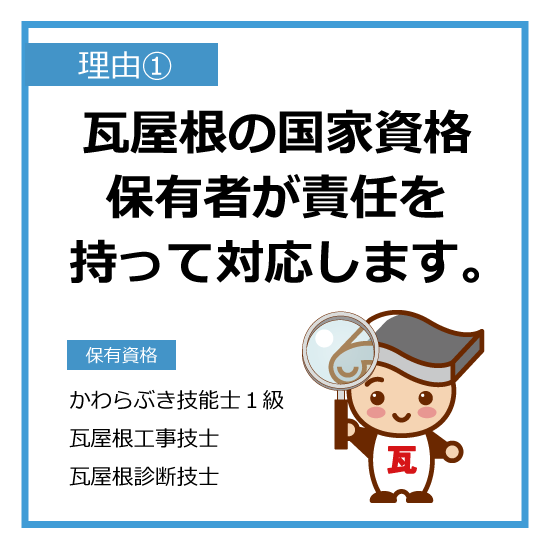 | 資格 | ■かわらぶき技能士1級 ■瓦屋根工事技士 ■瓦屋根診断技士 |