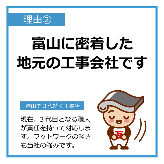| 加入団体 | ■社団法人全日本瓦工事業連盟 ■富山県瓦工事業協同組合 |